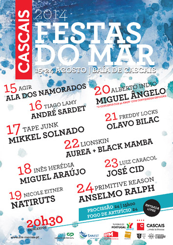 Começaram na passada sexta-feira as famosas Festas do Mar em Cascais. Gosto bastante destas festas porque, para além de ter um cartaz bastante bom, com imensos artistas conhecidos e que ouvimos no nosso quotidiano, são também realizadas num sítio que eu adoro e bem juntinho à praia. Melhor ambiente era impossível! De todos os nomes anunciados, o que queria mesmo ver era Natiruts. Infelizmente não vou poder ir hoje, com muita pena! No entanto, vou ver se consigo passar lá no fim de semana. Só mesmo para matar as saudades!